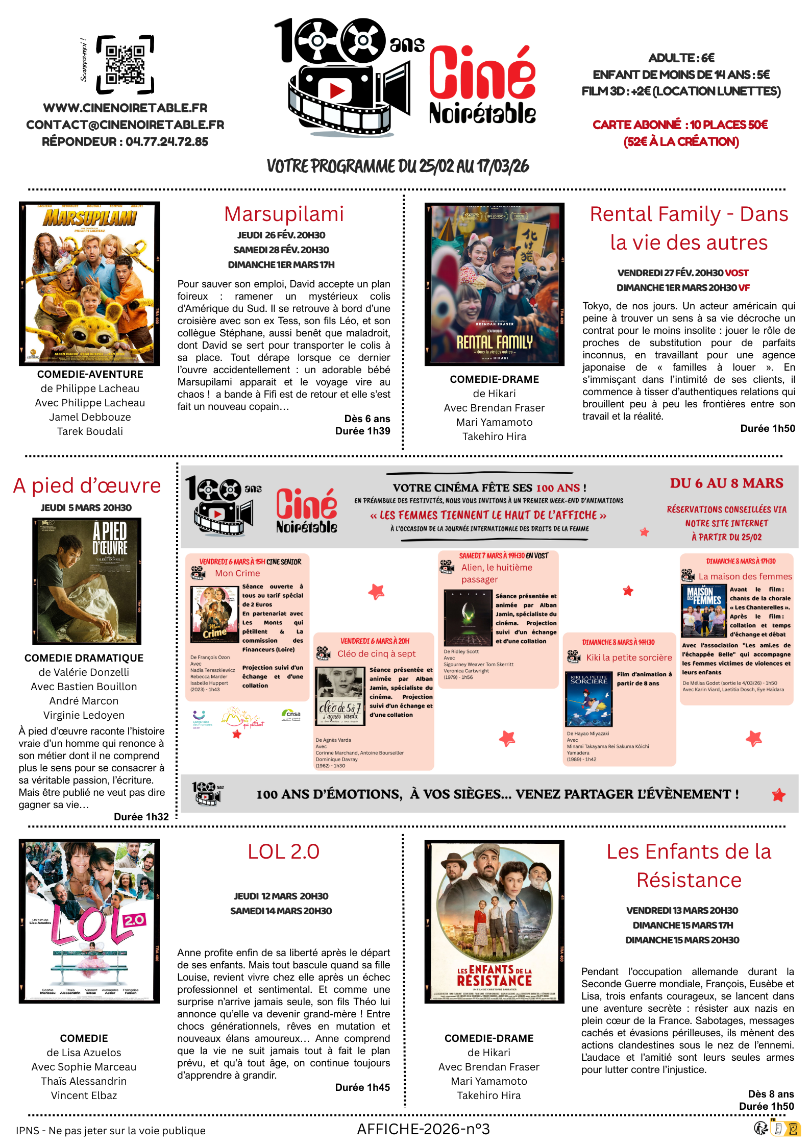Veuillez laisser ce champ vide Ne ratez plus une séance... Nous ne spammons pas ! Un email par semaine pour vous informer du programme de la semaine Vérifiez votre boite de réception ou votre répertoire d’indésirables pour confirmer votre abonnement. Vous êtes 938 à nous suivre… Vous pouvez télécharger nos affiches Du 4 Février 2026 au 24 Février 2026 Du 25 Février 2026 au 17 Mars 2026 Semaine du 11 Février TAFITI CINE GOUTERMercredi 11 Février à 15h00 Plus d'infos ARCO CINE GOUTERMercredi 11 Février à 17h00 Plus d'infos Le mage du Kremlin Jeudi 12 Février à 20h30 Dimanche 15 Février à 20h30 Plus d'infos Hamnet Vendredi 13 Février à 20h30 en VO Dimanche 15 Février à 17h00 en VF Plus d'infos Tafiti Samedi 14 Février à 20h30 Plus d'infos Semaine du 18 Février Gourou Jeudi 19 Février à 20h30 Samedi 21 Février à 20h30 Dimanche 22 Février à 20h30 Plus d'infos Les Légendaires Vendredi 20 Février à 20h30 Dimanche 22 Février à 17h00 Plus d'infos Semaine du 25 Février Marsupilami Jeudi 26 Février à 20h30 Samedi 28 Février à 20h30 Dimanche 1er Mars à 17h00 Plus d'infos Rental Family - Dans la vie des autres Vendredi 27 Février à 20h30 en VOST Dimanche 1er Mars à 20h30 en VF Plus d'infos Semaine du 4 Mars A pied d’œuvre Jeudi 5 Mars à 20h30 Plus d'infos Mon Crime Vendredi 6 Mars à 20h30 Plus d'infos Cléo de cinq à sept Vendredi 6 Mars à 20h00 Plus d'infos Alien le 8ème Passager Samedi 7 Mars à 19h30 en VOST Plus d'infos Kiki la petite sorcière Dimanche 8 Mars à 14h30 Plus d'infos La maison des femmes Dimanche 8 Mars à 17h30 Plus d'infos Semaine du 11 Mars LOL 2.0 Jeudi 12 Mars à 20h30 Samedi 14 Mars à 20h30 Plus d'infos Les Enfants de la Résistance Vendredi 13 Mars à 20h30 Dimanche 15 Mars à 17h00 Dimanche 15 Mars à 20h30 Plus d'infos